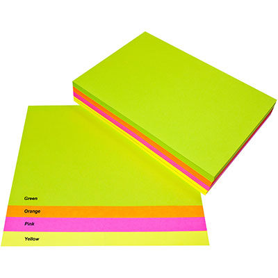 QUILL COLOURED A4 COPY PAPER 80GSM FLUORO ASSORTED PACK 500 SHEETS