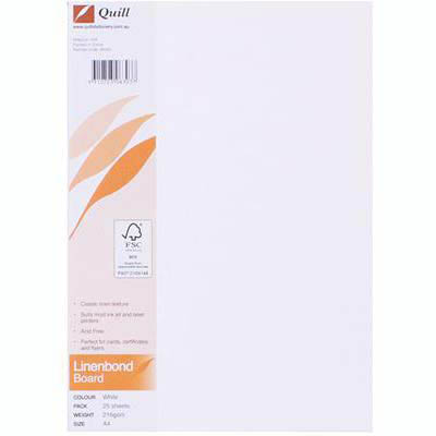 QUILL LINEN BOND BOARD 216GSM A4 WHITE PACK 25