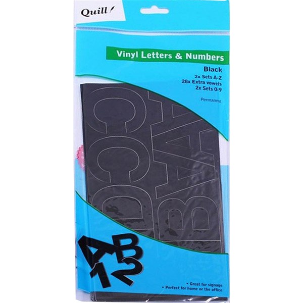 QUILL POSTER BOARD ADHESIVE VINYL LETTERS AND NUMBERS 25MM BLACK PACK 100