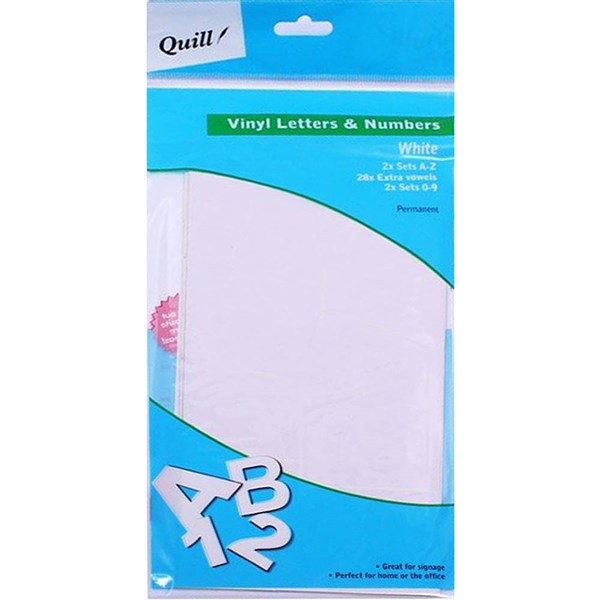 QUILL POSTER BOARD ADHESIVE VINYL LETTERS AND NUMBERS 50MM WHITE PACK 100