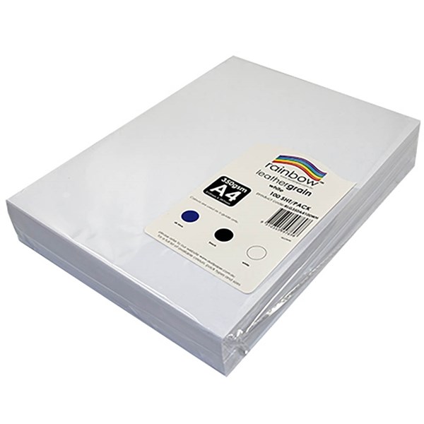 RAINBOW BACK BINDING BOARD LEATHER GRAIN 350GSM 100 SHEETS WHITE
