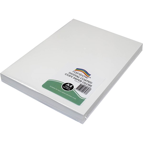 RAINBOW DIGITAL COATED A4 COPY PAPER GLOSS 130GSM WHITE 250 SHEETS