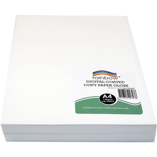 RAINBOW DIGITAL COATED A4 COPY PAPER GLOSS 170GSM WHITE 250 SHEETS