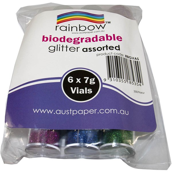 RAINBOW GLITTER BIO-DEGRADABLE 7G ASSORTED PACK 6