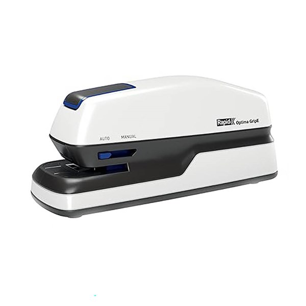 The Rapid Optima Electric Stapler Grip-E provides effortless stapling for up to 20 sheets of paper at a time (80 gsm), saving time at home or at work