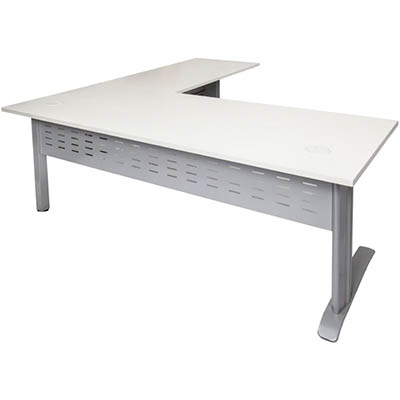 RAPID SPAN DESK AND RETURN WITH METAL MODESTY PANEL 1800 X 700MM / 1100 X 600MM WHITE/SILVER