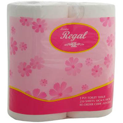 REGAL PREMIUM TOILET ROLL 2-PLY 250 SHEET WHITE PACK 4