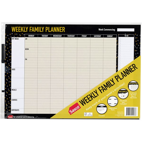 SASCO UNDATED ERASABLE WEEKLY FAMILY PLANNER A3