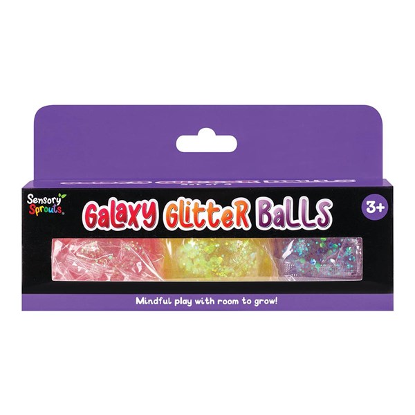 SENSORY SPROUTS GALAXY GLITTER BALLS IN A PURPLE BOX ASSORTED SET 3