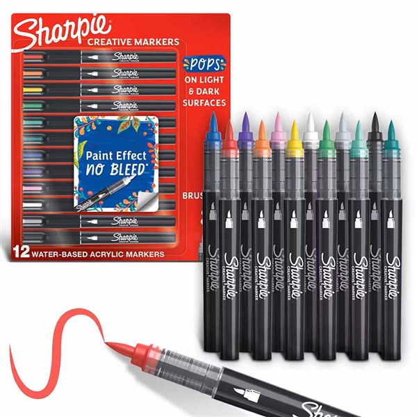 SHARPIE CREATIVE WATER-BASED ACRYLIC MARKERS BRUSH TIP ASSORTED COLOURS PACK 12