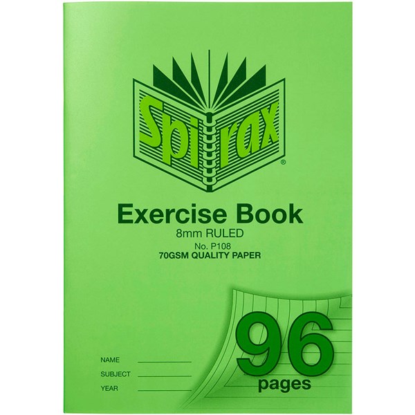 SPIRAX P108 EXERCISE BOOK 8MM RULED 70GSM 96 PAGE A4 GREEN