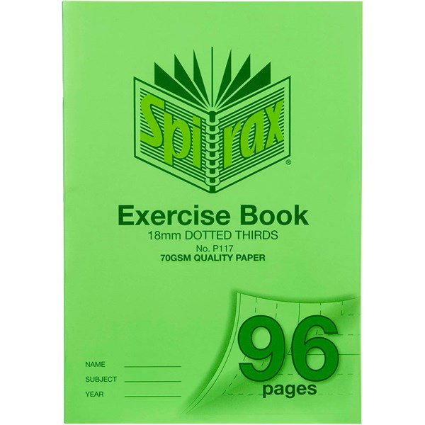 SPIRAX P117 EXERCISE BOOK 18MM DOTTED THIRDS 70GSM 96 PAGE A4 GREEN