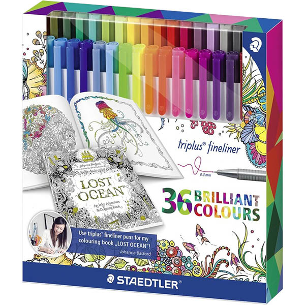 STAEDTLER 323 JOHANNA BASFORD TRIPLUS FINELINE PEN ASSORTED BOX 36