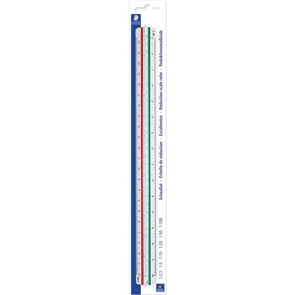 • Blistercard containing 1 reduction scale ruler, version DIN (1:2,5, 1:5, 1:10, 1:20, 1:50, 1:100)
