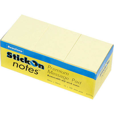 STICK-ON NOTES 100 SHEETS 38 X 50MM YELLOW