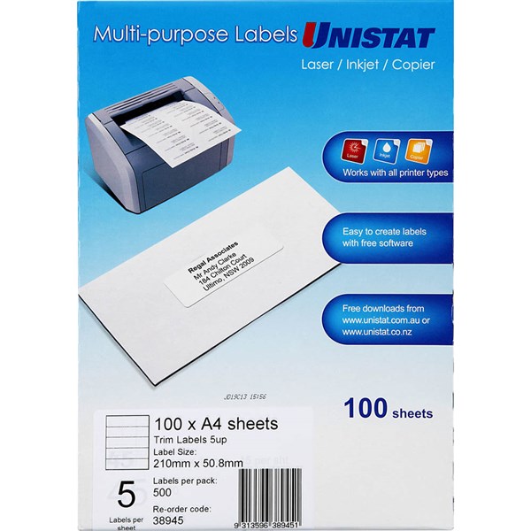 UNISTAT 38945 MULTI-PURPOSE LABEL 5UP 50.8 X 210MM PACK 100