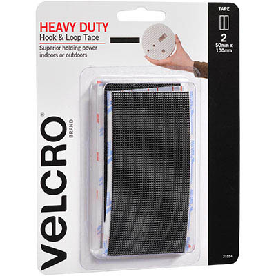 VELCRO BRAND STICK-ON HEAVY DUTY HOOK AND LOOP TAPE 50 X 100MM BLACK PACK 2