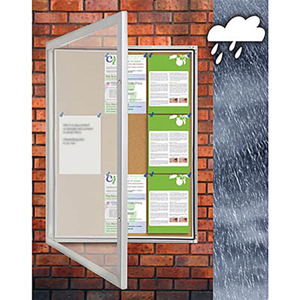 VISIONCHART TX WEATHER RESISTANT NOTICE CASE 1050 X 1080MM SILVER FRAME CORK BACKGROUND
