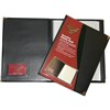 Traditional vinyl fixed pocket display book with copy safe pockets, metal corners and card window on inside of front cover