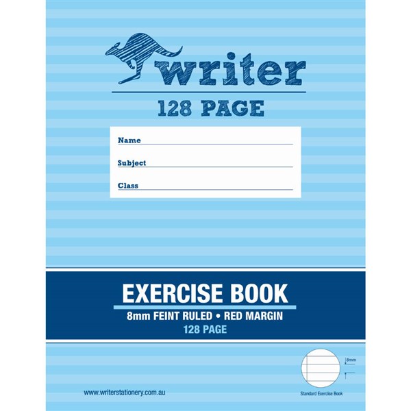 WRITER EXERCISE BOOK FEINT RULED 8MM 60GSM 128 PAGE 225 X 175MM