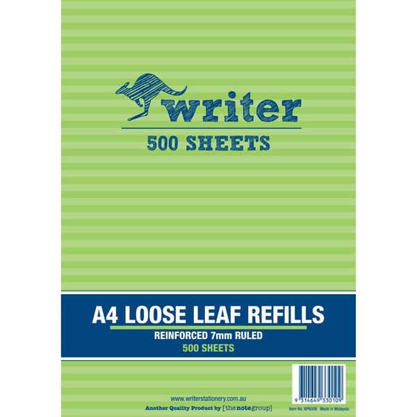 - Writer loose leaf refills can be used to refill pages in ring binders