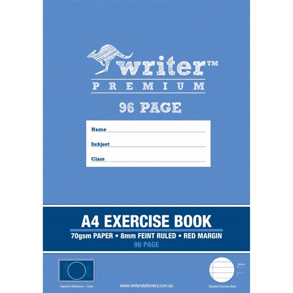 WRITER PREMIUM EXERCISE BOOK FEINT RULED 8MM 70GSM 96 PAGE A4 CIRCLE