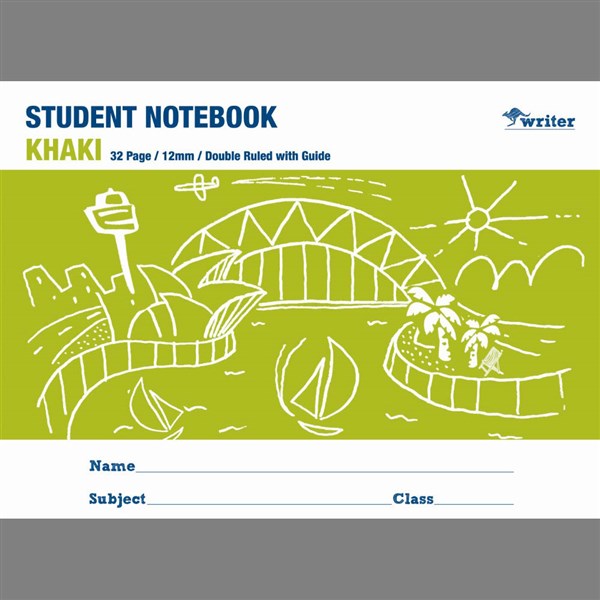 WRITER STUDENT NOTEBOOK 12MM DOUBLE RULED/GUIDE 32 PAGE 250 X 175MM KHAKI