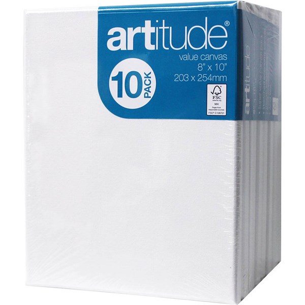 ARTITUDE PAINT CANVAS 8 X 10 INCH WHITE PACK 10