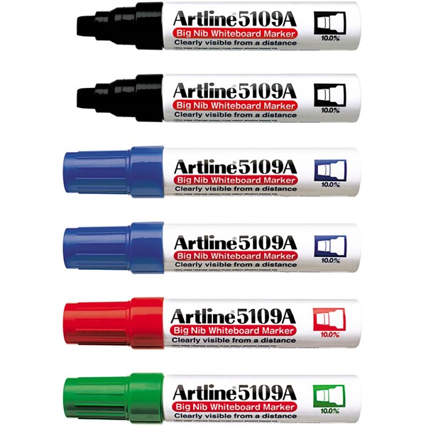 Artline 5109A whiteboard marker contains extra large nibs on this whiteboard marker produces bold line widths so that messages can be easily seen from a distance