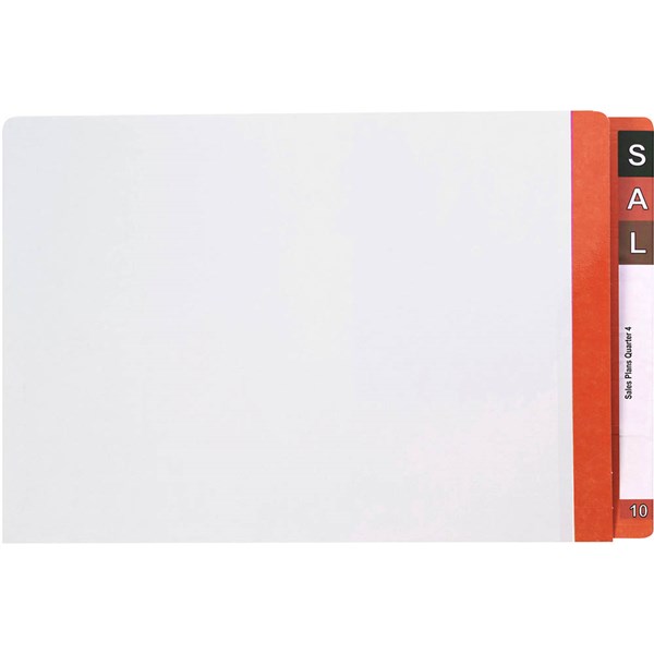 • White shelf lateral files with dark orange Mylar tab, foolscap