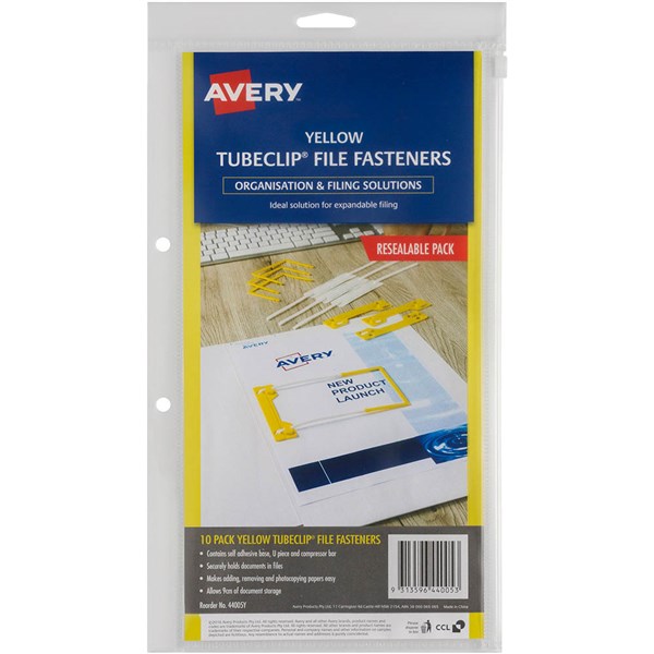 AVERY 44005Y TUBECLIP FILE FASTENERS YELLOW PACK 10