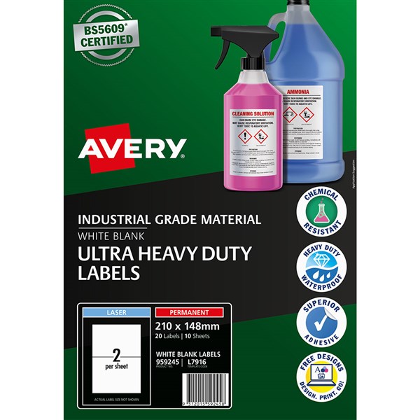 AVERY 959245 ULTRA HEAVY DUTY LABEL 210 X 148MM WHITE PACK 10