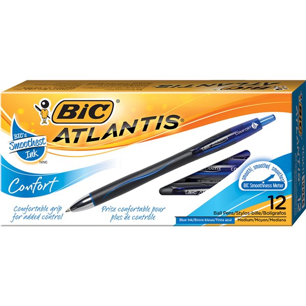 BIC ATLANTIS COMFORT RETRACTABLE BALLPOINT PEN 1.2MM BLUE BOX 12