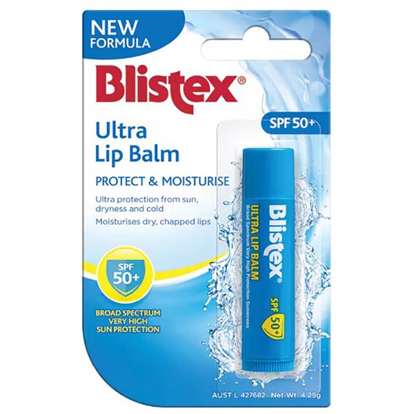 - With very high protection sunscreen, Blistex Ultra Lip Balm SPF 50+ guards your lips against the extreme effects of the Aussie sun, dryness and the cold