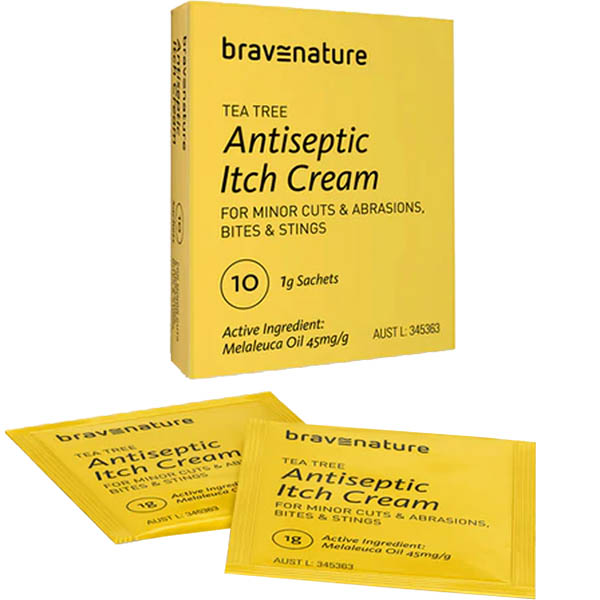BRAVENATURE TEA TREE ANTISEPTIC ITCH CREAM SACHETS PACK 10