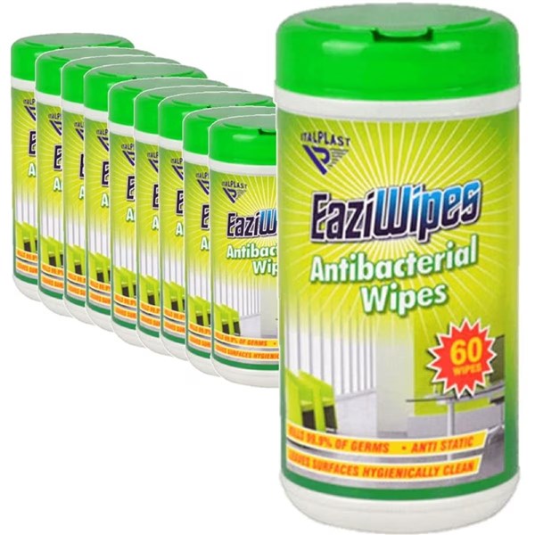 BULK ITALPLAST EAZIWIPES CLEANING WIPES ANTIBACTERIAL 50 TUBS OF 60 SHEETS (3000 WIPES)