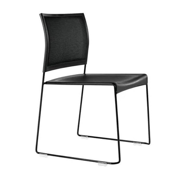 - It features black powder coated sled frame, strong polypropylene seat, breathable mesh back, linkable and stackable