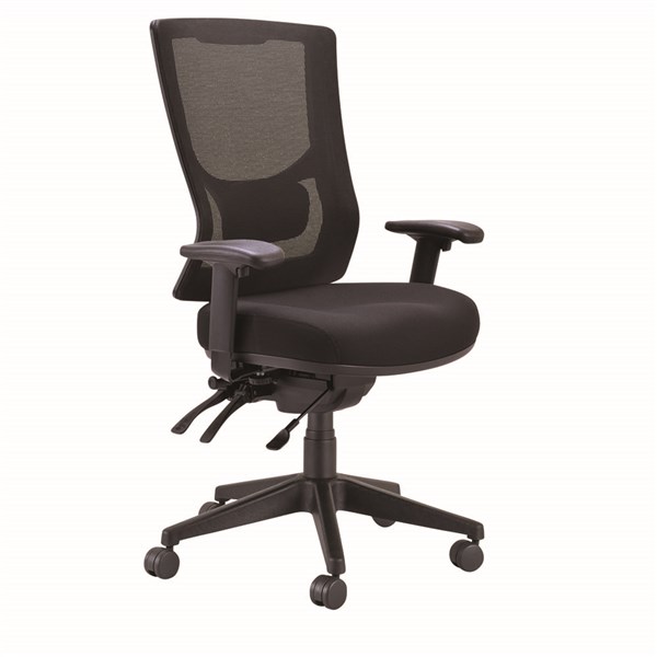 BURO METRO II 24/7 TASK CHAIR HIGH MESH BACK 3-LEVER NYLON BASE WITH ARMS BLACK