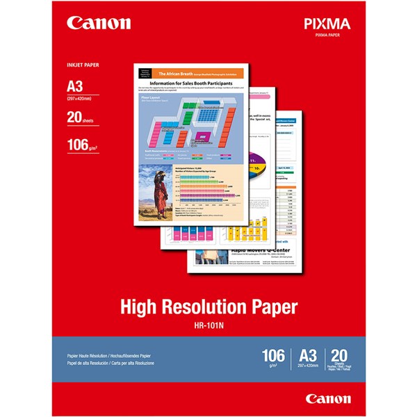 CANON HR-101 HIGH RESOLUTION PHOTO PAPER 106GSM A3 WHITE PACK 20