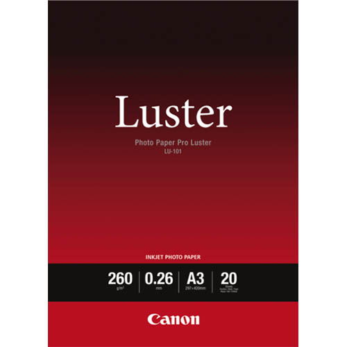 CANON LU-101 LUSTER PHOTO PAPER 260GSM A3 WHITE PACK 20