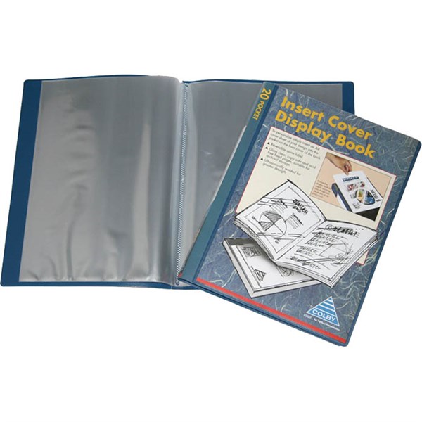 COLBY DISPLAY BOOK NON-REFILLABLE INSERT COVER 20 POCKET A4 NAVY