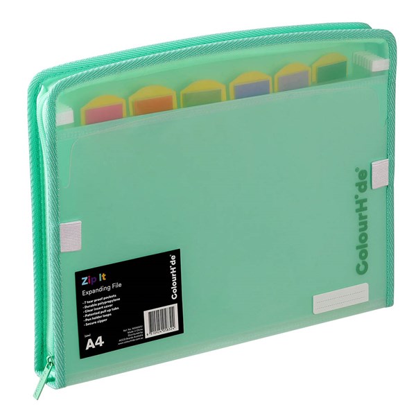 COLOURHIDE ZIP IT EXPANDING FILE A4 TEAL GREEN