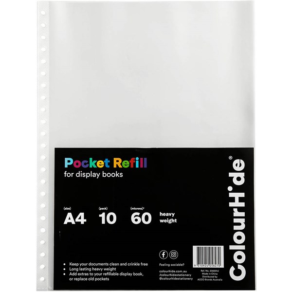 COLOURHIDE DISPLAY BOOK POCKET REFILLS A4 CLEAR PACK 10