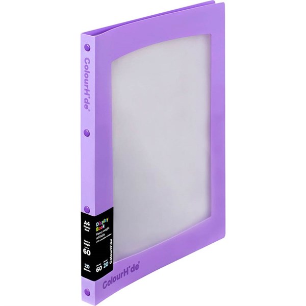 COLOURHIDE DISPLAY BOOK REFILLABLE INSERT 20 POCKET A4 PURPLE