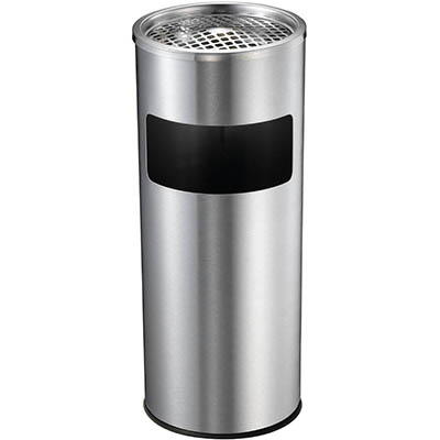 COMPASS STAINLESS STEEL LOBBY BIN WITH ASHTRAY 10 LITRE