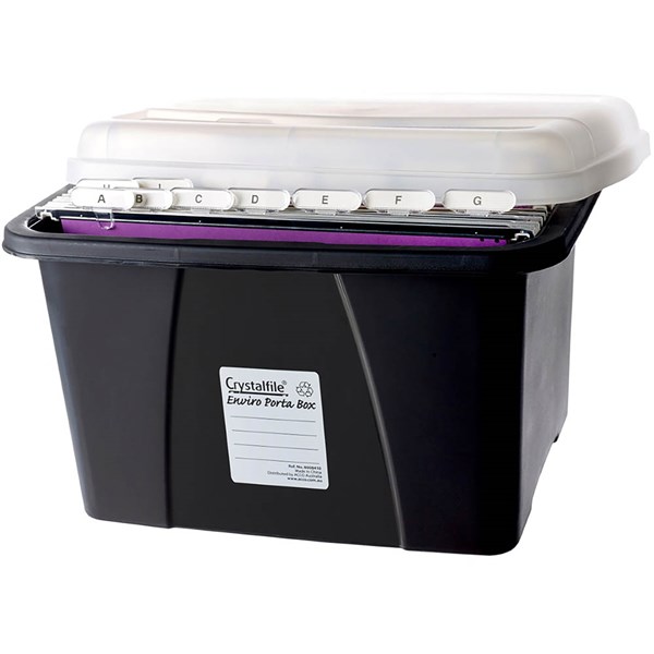 CRYSTALFILE ENVIRO PORTA STORAGE BOX WITH FILES TABS AND INSERTS 32 LITRE BLACK/CLEAR