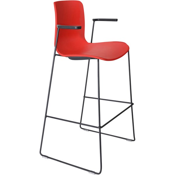 DAL ACTI BAR STOOL SLED BASE HIGH 760MM ARMS BLACK ARM-PADS AND BLACK POWDERCOAT FRAME POLYPROP SHELL