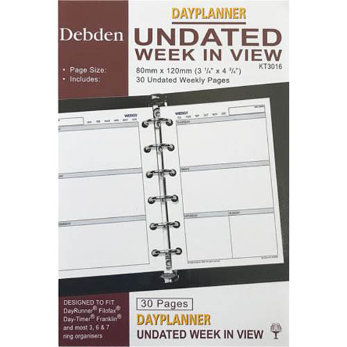 DEBDEN DAYPLANNER KT3016 PERSONAL EDITION REFILL NON-DATED WEEKLY TO VIEW 120 X 81MM