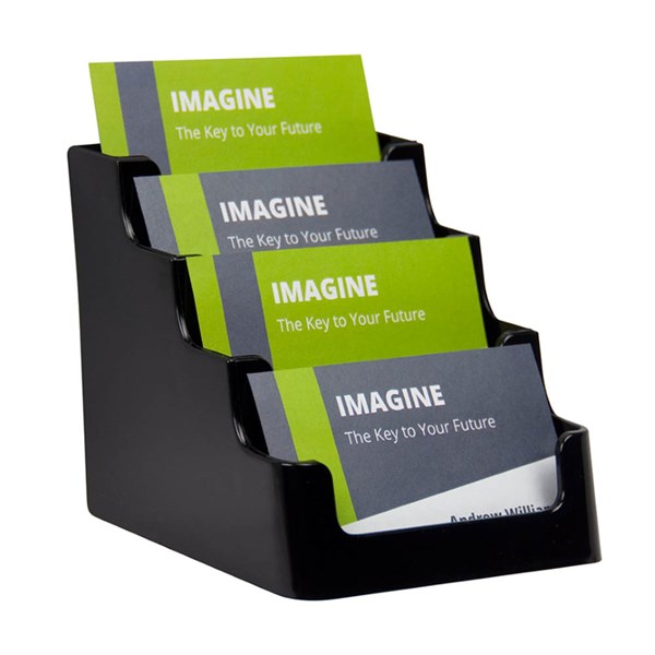 Display your business cards prominently using this 4 tier, recycled plastic, landscape business card holder