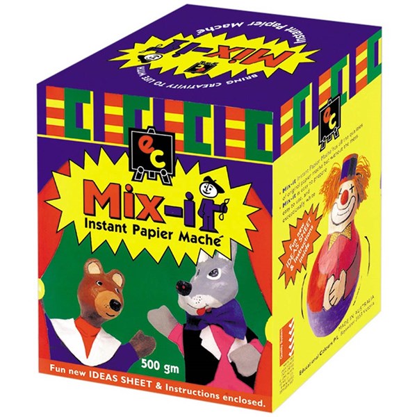 • Mix-It instant papier mach will adhere to supporting forms of paper, glass, wood, etc and can be decorated with any type of medium or with any Educational Colours paint